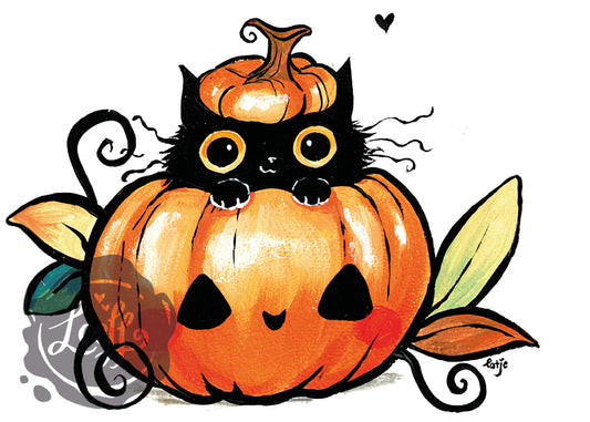 Planter Pumpkin with Black Cat