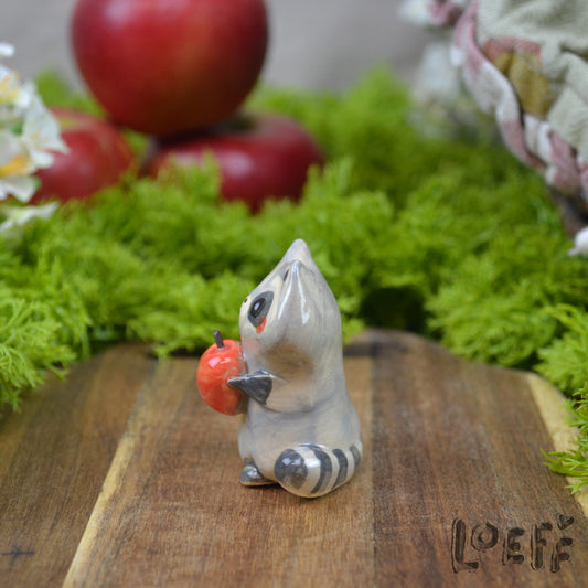 Tiny Raccoon with Apple