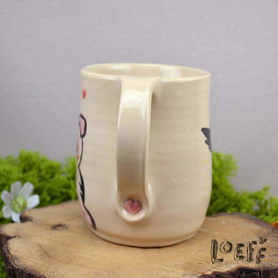 Elke MoG wordt met de hand gedraaid in ons atelier, afgewerkt met kleurrijke glazuren en twee keer gebakken in de keramiekoven. Dit ambachtelijke proces zorgt ervoor dat geen enkele mok exact hetzelfde is — iedere MoG heeft zijn eigen subtiele vorm, details en karakter. Een echte Loeff-creatie, met liefde gemaakt.