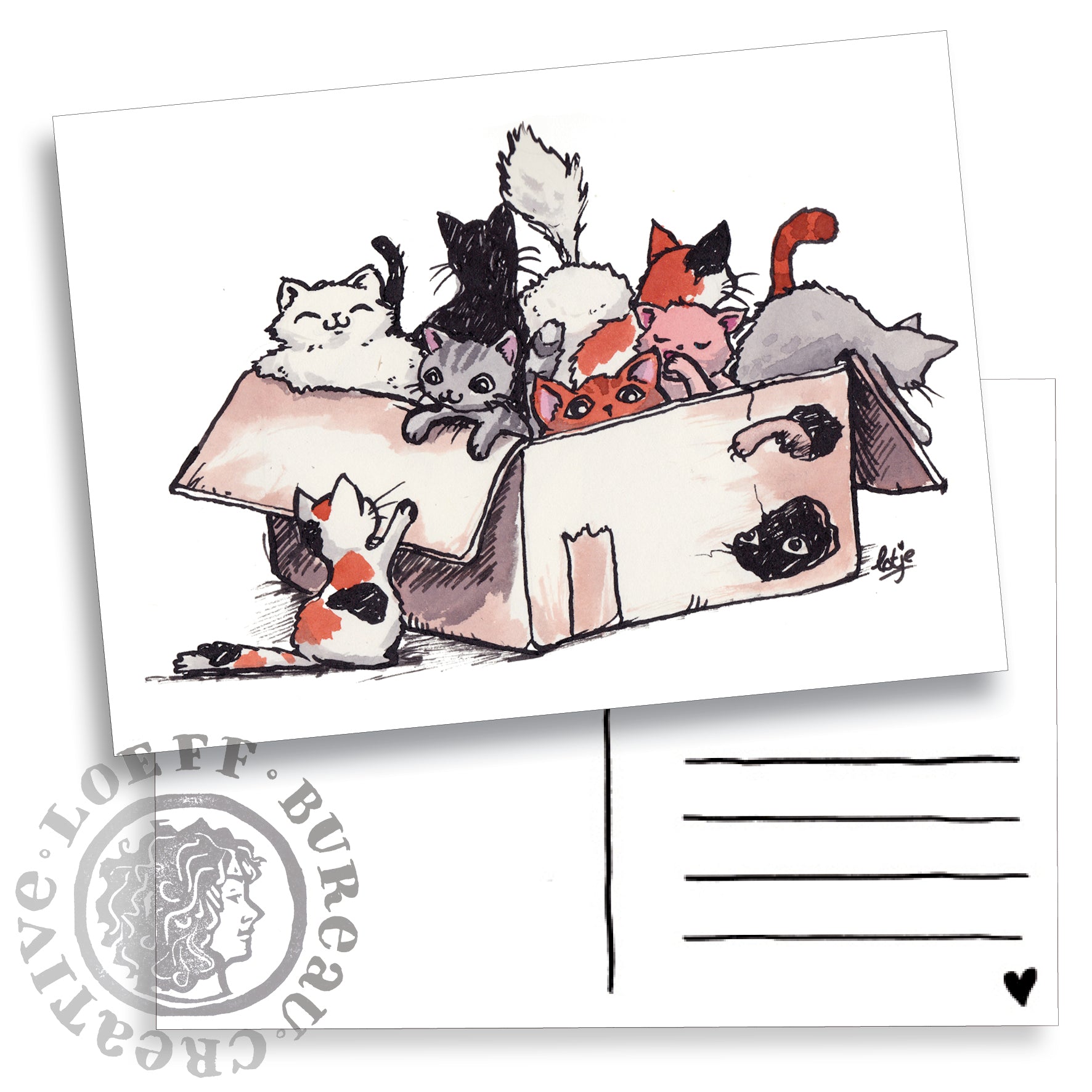 The illustrations for the cards are selected from our sketchbooks, paintings and other doodles. Printed on thick, off-white cardboard, selected to come as close to the original image as possible.