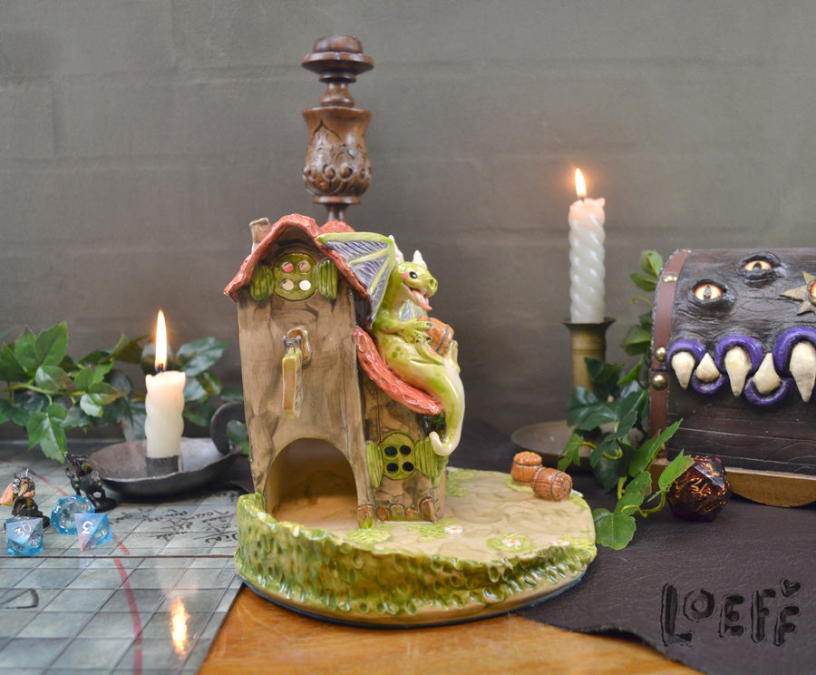 Each Dice Tower is lovingly created by our two Loeff creators, Lot & Pat, and shaped entirely by hand from clay. Tiny details are carefully added one by one, before the tower is hand-painted with ceramic glazes that bring its story to life. Extra attention is given to the design, ensuring it can roll multiple dice smoothly — whether you’re rolling for intimidation or striking critical hits.