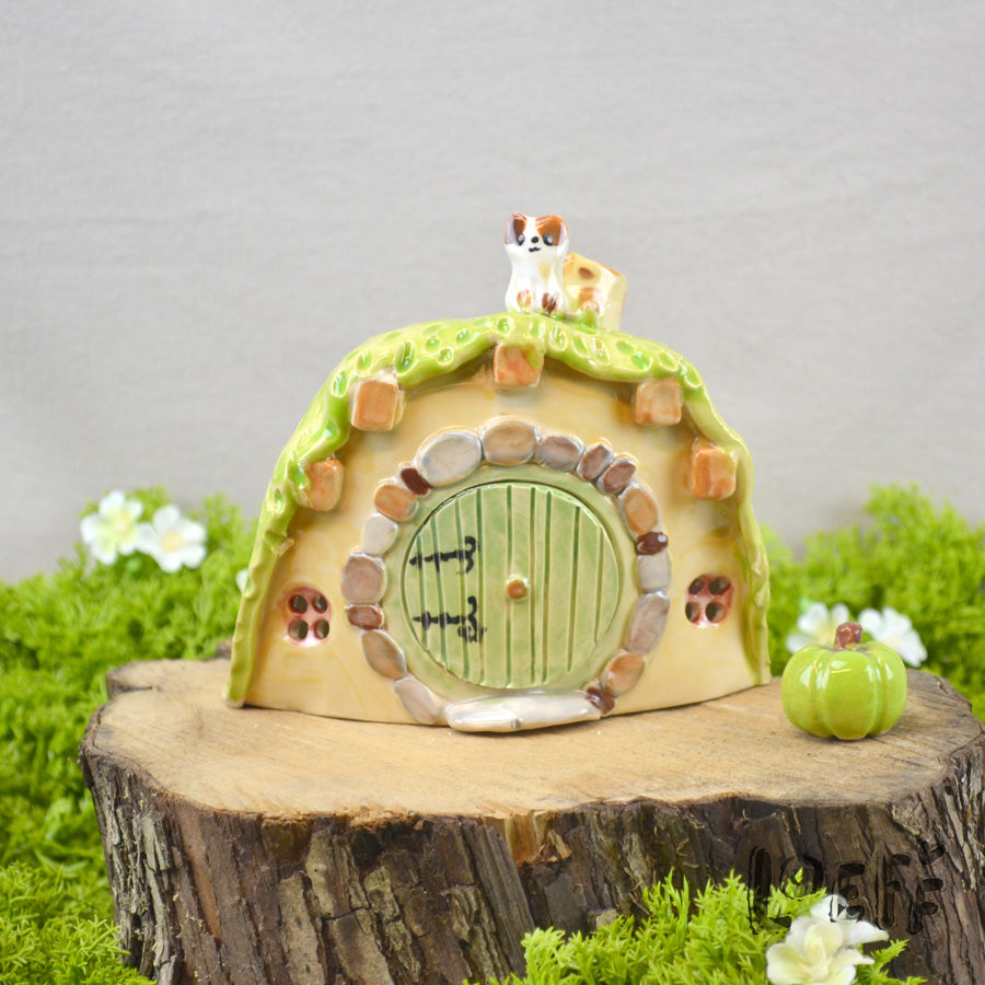 An incense cone can be placed on the small plate inside the burner. When lit, the fragrant smoke gently flows through the chimney, creating a calming and magical effect. Of course this lovely meadow home is also suitable for tealights.